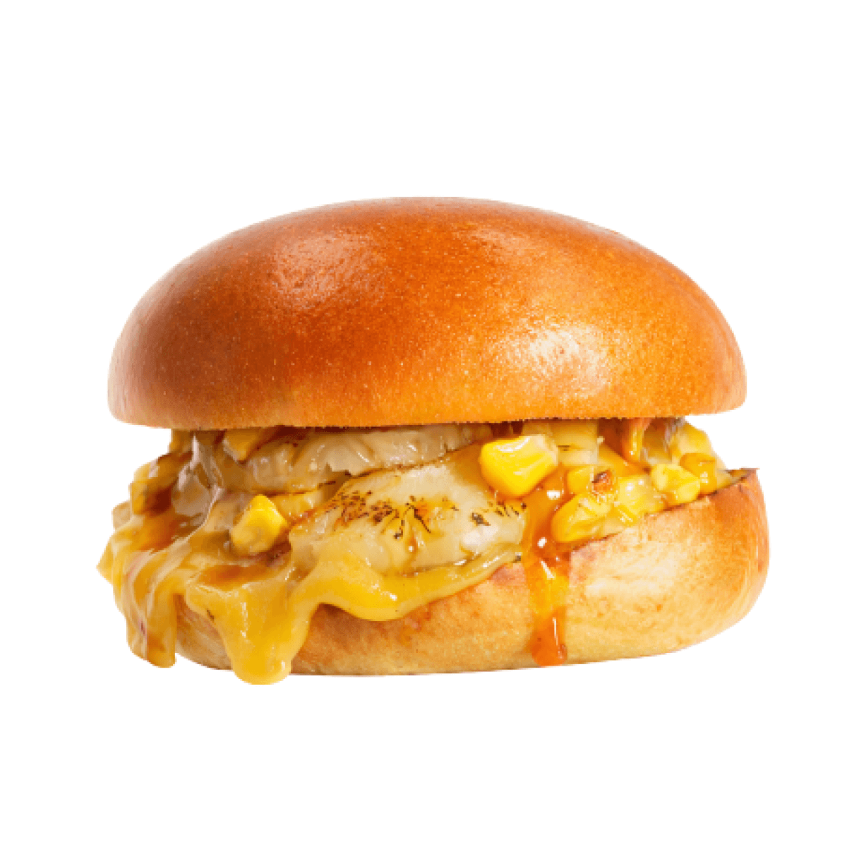 Teriyaki Chicken Smash. Potato brioche bun with smashed halal double chicken patties, double cheddar cheese, grilled pineapple, charred corn with lime & chili, finished with a teriyaki-chiliglaze.